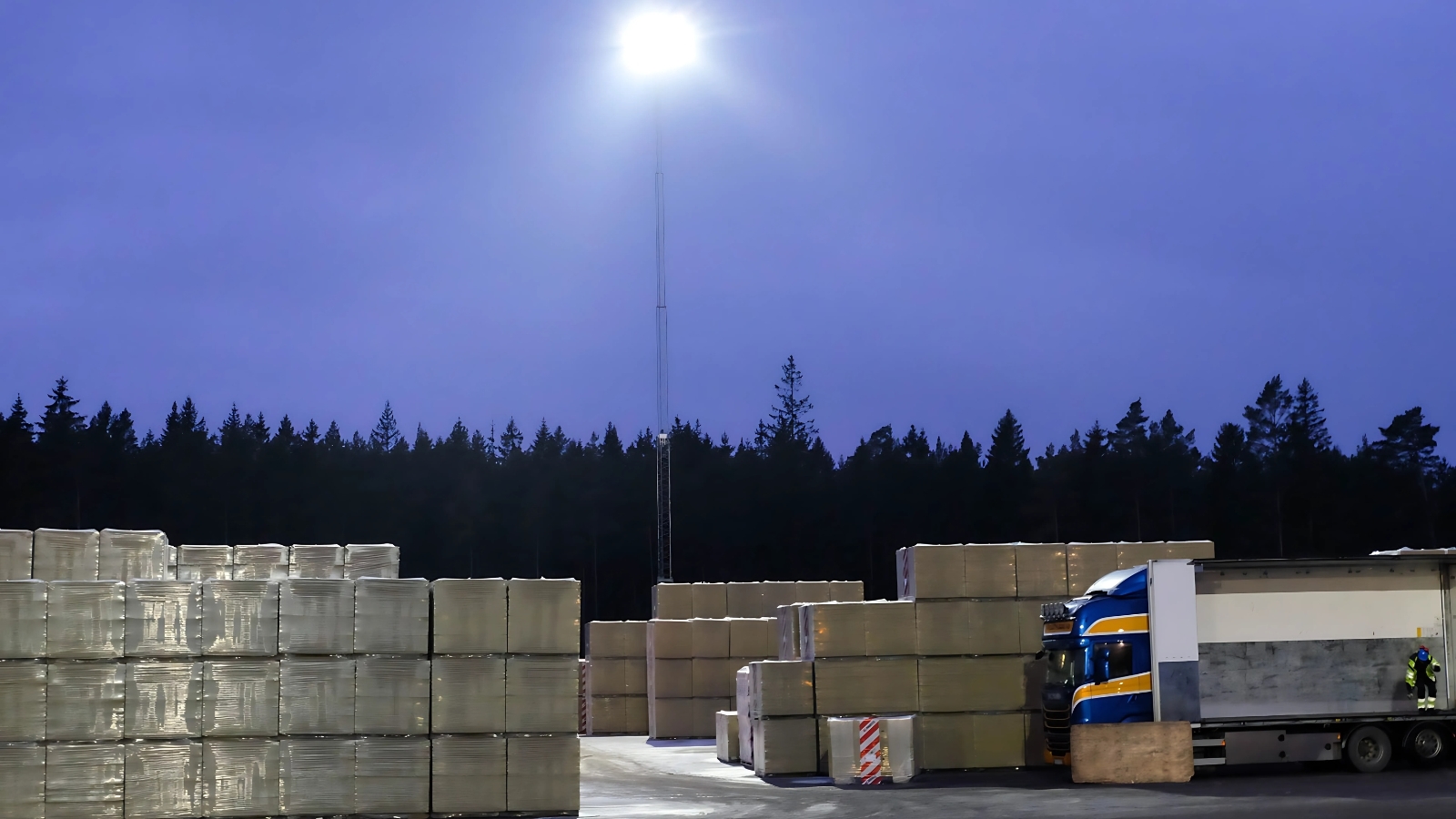 Parocs fabriksområde i Hällekis har monterat Lumine LEDs nya högeffektiva Floodlight Arena. Armaturen har hela 150.000lm/90.000lm. Nya Floodlight Arena ersätter 2000W metallhalogen armaturer och kan monteras upp till 36 meters höjd. Paroc är även nöjda med den låga reflektionen från armaturen som inte bländar trafiken på området. Även den smidiga installationen är något som uppskattas av elmontörerna. Paroc har även bytt ut sina kvicksilverlampor mot Lumine LEDs nya moderna LED Cornlights.