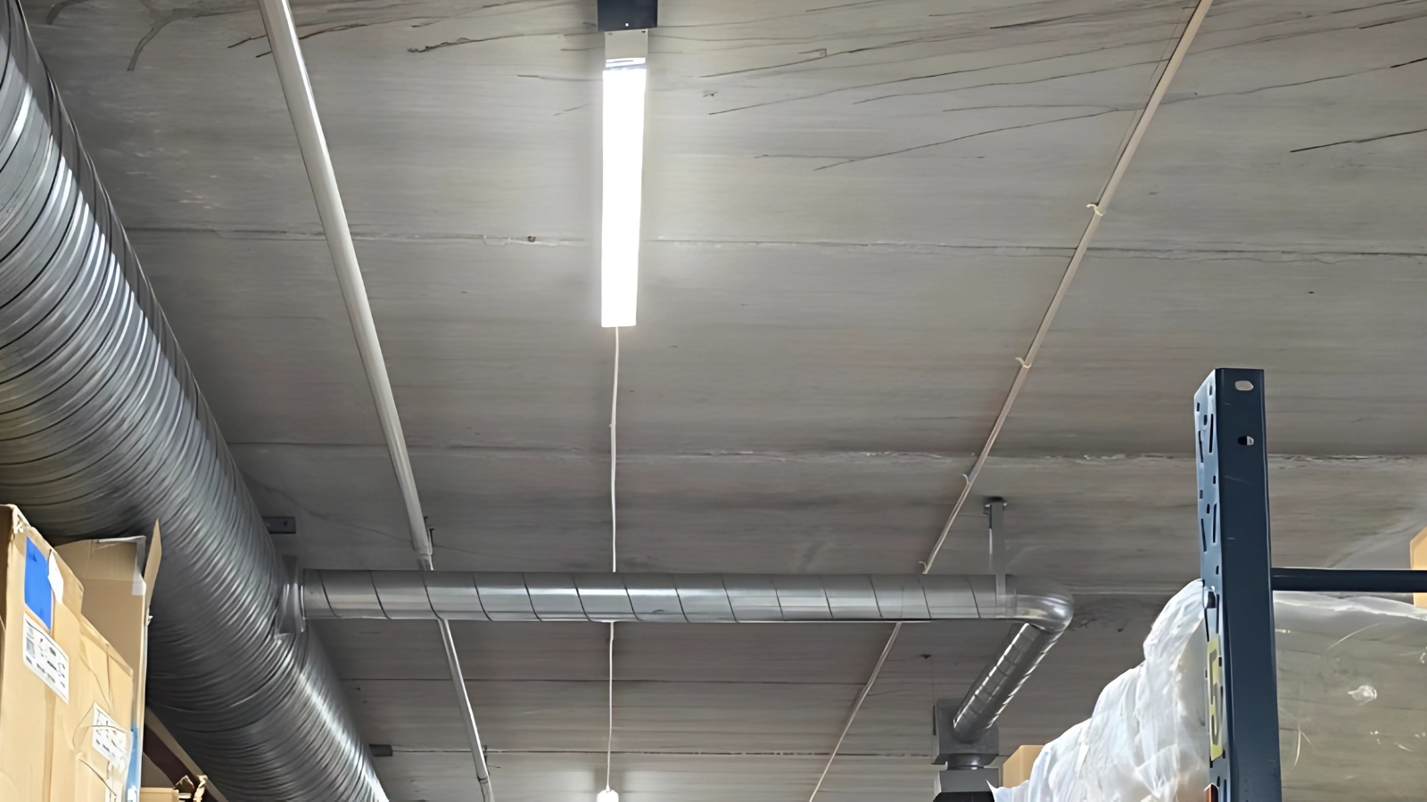 Eftersom man valde att automatisera och styra allmänbelysningen på lagret via DALI/Casambi så är det sensorerna som sköter kommunikationen till armaturerna via DC-signal, det innebär att man enkelt kan dimra upp/ned men även stänga Av/På allmänljuset utan att reglera spänningen på faserna, samtidigt som hela systemet är utrustade med snabbkontakter (allmänbelysning, sensorboxar och nödbelysning). Detta möjliggör en installation av alla armaturer på samma matning, utan att kompensera på funktion eller säkerhet.